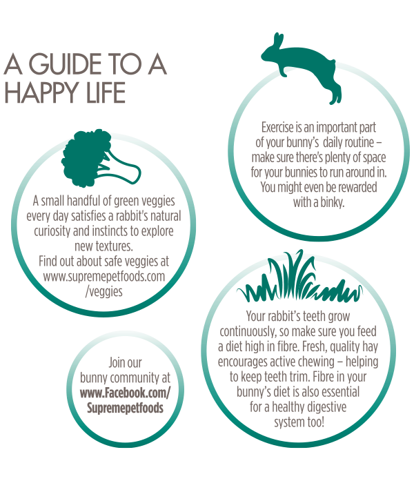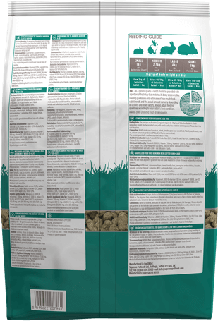 Een gemiddeld volwassen konijn (2,5 kg) heeft 60-70 g/dag Selective Rabbit 4+. nodig. Het dier moet altijd verse groenten, hooi van goede kwaliteit en schoon drinkwater hebben. Koel en droog bewaren.